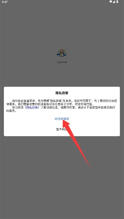 1、首次使用时,需仔细阅读平台的服务条款和隐私政策,确认无误后,点击同意并接受按钮即可进入平台。