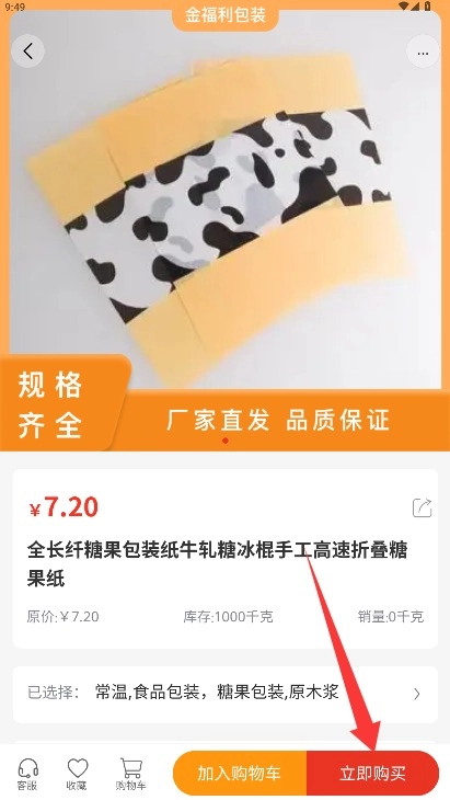 4、进入商品详情页面后,点击页面右下角的“立即购买”按钮,就能完成订购流程。