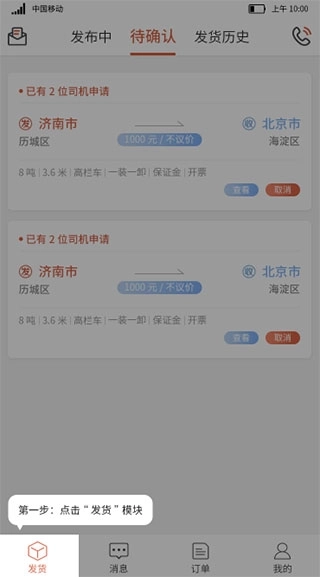 当货主找到合适车源之后则可以使用自动拨号的功能电话呼叫司机。