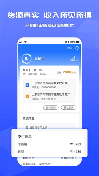 货满满货主版是山东云水网运物流有限公司开发的一款货物运输的生活服务类软件。在软件中用户可以一键发布货源信息,快速匹配合适车辆,还能直接联系司机进行沟通。软件为用户提供认证的车源,还有实时货物的定位和清楚的运输报价。软件内有线上交易结算、订单管理、电子合同签订等等功能。此外,软件还为用户提供开具发票的服务。