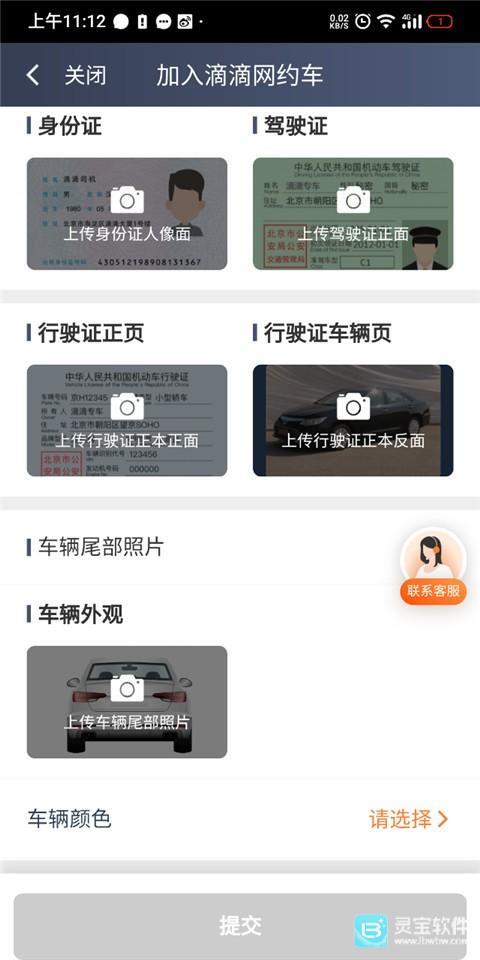 4、最后,根据页面要求上传个人身份证、驾驶证、行驶证、车辆外观等一些相关证件,点击【提交】待审核通过即可接单赚钱啦