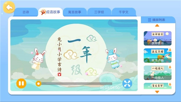 6、此外,古诗、成语故事、寓言故事以及三字经等内容也可供学习。