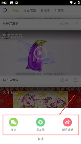 4、选择对应的分享渠道,完成该视频内容的分享操作。
