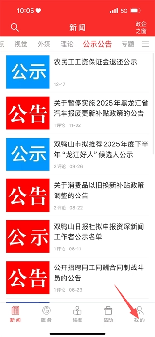 1、在新闻页面,点击底部的“服务”选项,即可进入服务页面。