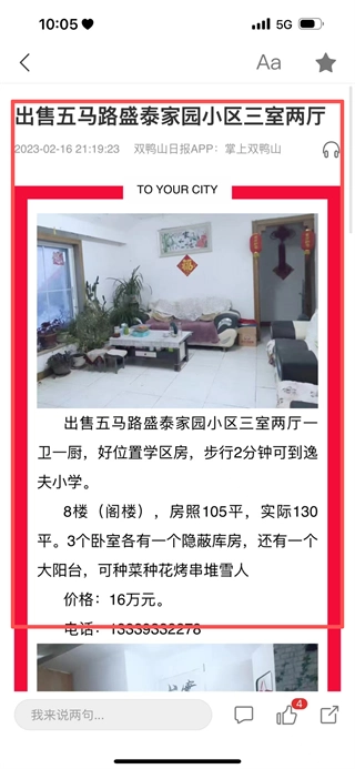 3、接下来可以点击“五马路盛泰家园小区三室两厅”的出售条目,进入详情页面。