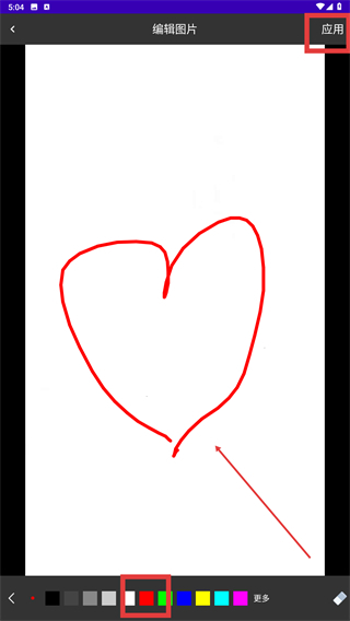 3、进入编辑状态后,从颜色面板中选择想要的色彩(例如红色),接着在画布上绘制图案,绘制完成后,点击界面右上角的【应用】按钮来确认这次操作。
