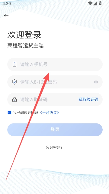 1、点击登录货主版账户锁绑定的账号,登录进入。