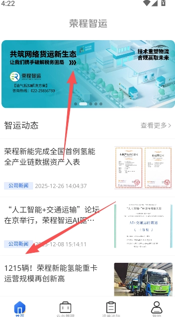 2、首页的智运动态资讯栏目,为广大用户提供了大量货运物流服务相关资讯,点击内容区域即可查看详情。