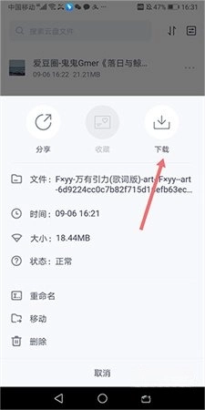 用户只需在应用内的文件页面,点击文件右侧的扩展图标(可参考下图红色箭头指示的区域),之后底部会弹出渠道选项,用户点击相应渠道就能完成文件操作。