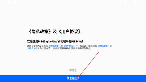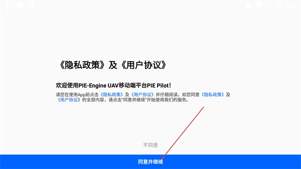1、打开【PIE-Pilot】后,仔细阅读《隐私政策》与《用户协议》,点击【同意并继续】按钮,就能进入接下来的操作步骤。