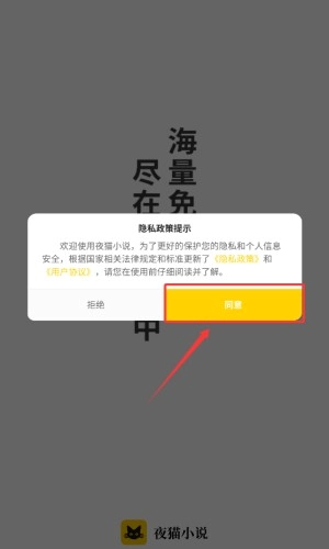 1、在隐私提示页,点击红色箭头指的同意按钮。