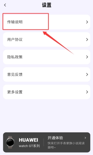 3、在设置中点击传输说明。