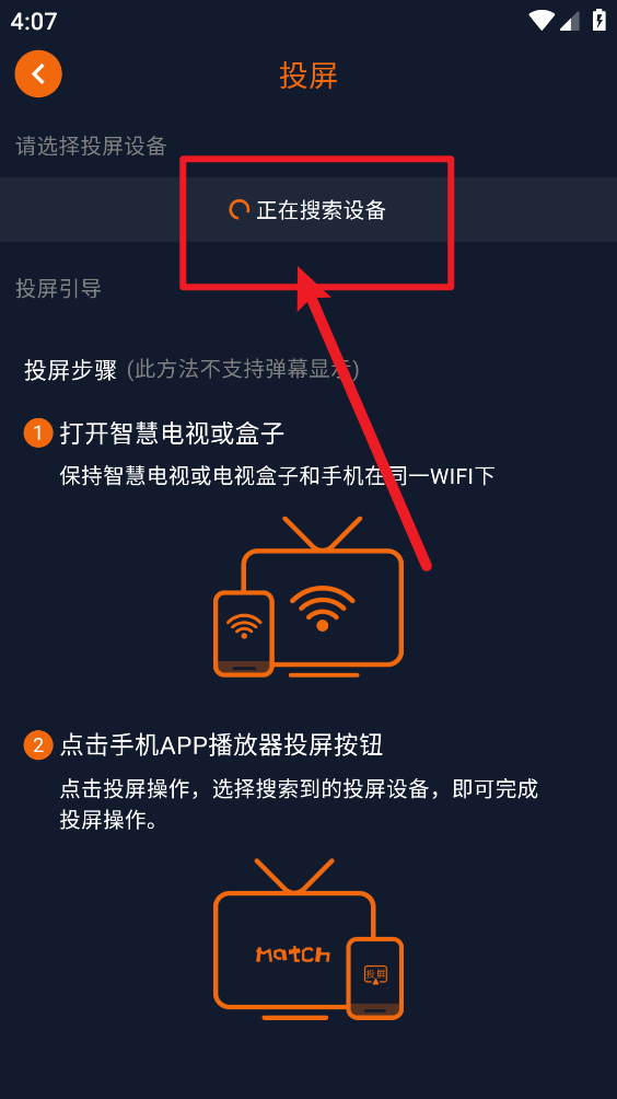 5、完成搜索并连接电视设备后,就能开始播放内容了,不过要注意手机和电视得处于同一网络环境中。