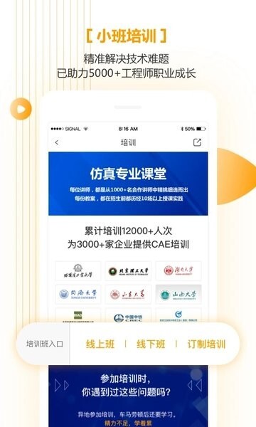 1、在主界面中点击【课程】选项,即可进入课程相关页面,在此页面能够查看培训安排以及各类学习资源的分类情况。