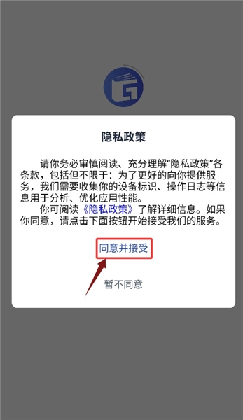 1、首次打开应用时,需点击同意并接受相关条款,确认后才能进入登录界面。