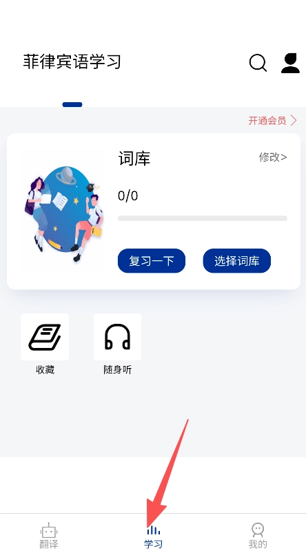 3、把复习、收藏和随身听功能整合起来,覆盖学习的各个环节,构建起连贯的菲律宾语词汇学习流程。