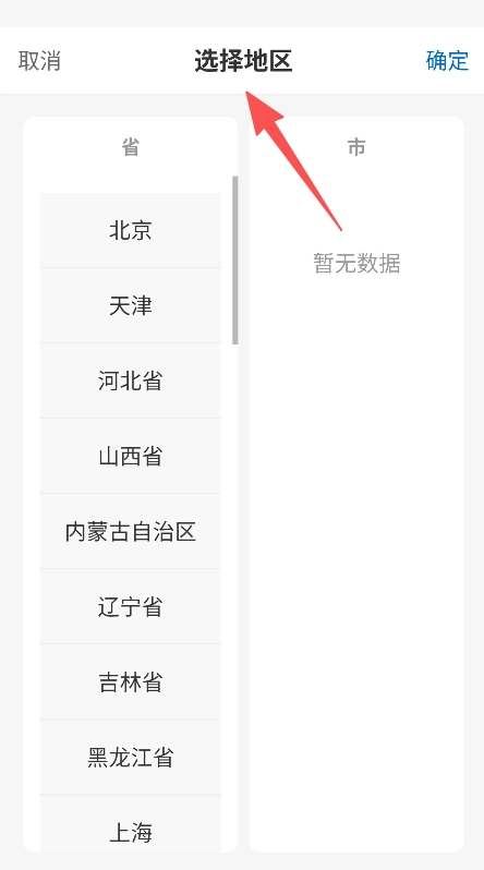 1、进入选择地区页面,挑选目标省份后点击确定。