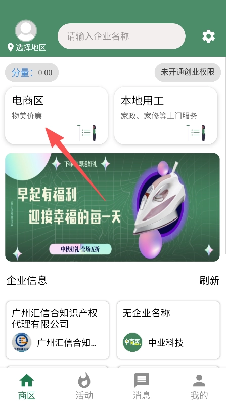 2、支持板块进入功能,在主页面点击电商区,即可查看该板块下的商品内容。