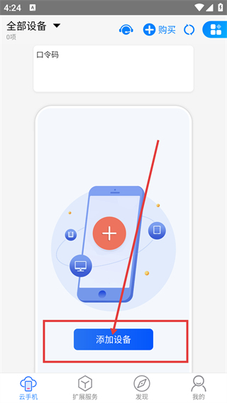 1、在云手机页面点击【添加设备】按钮,即可进入云手机购买界面,之后就能挑选对应的云手机套餐了。