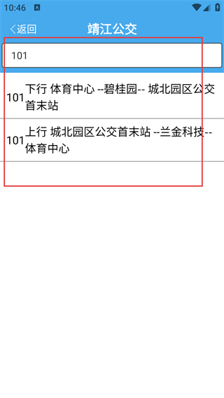 3、在公交线路列表里挑选目标线路(例如【101路】),就能查看该线路具体的运行方向和途经的站点。