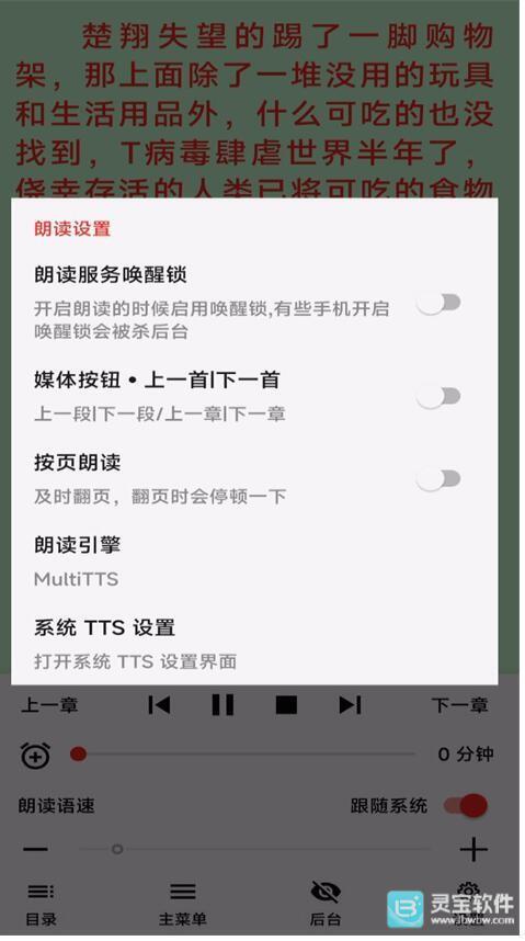 4、之后在其他看小说的软件里,选择用系统默认的TTS引擎或MultiTTS朗读就行;
