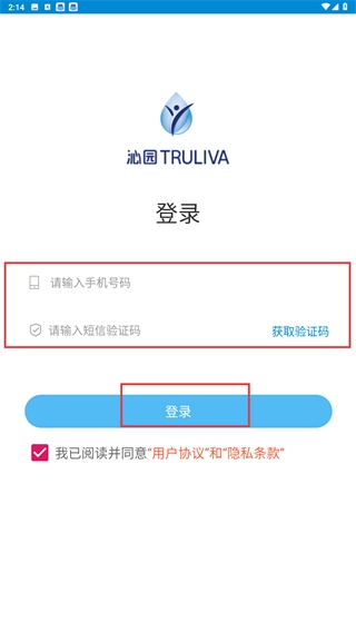 2、在登录页面中,需先在【请输入手机号码】栏填写相关信息,接着点击【获取验证码】并填入收到的验证码,之后勾选协议,最后点击【登录】按钮即可。