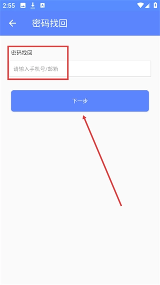 3、进入密码找回页面后,填写对应的手机号或邮箱信息,接着点击“下一步”按钮,以继续推进密码找回的流程。