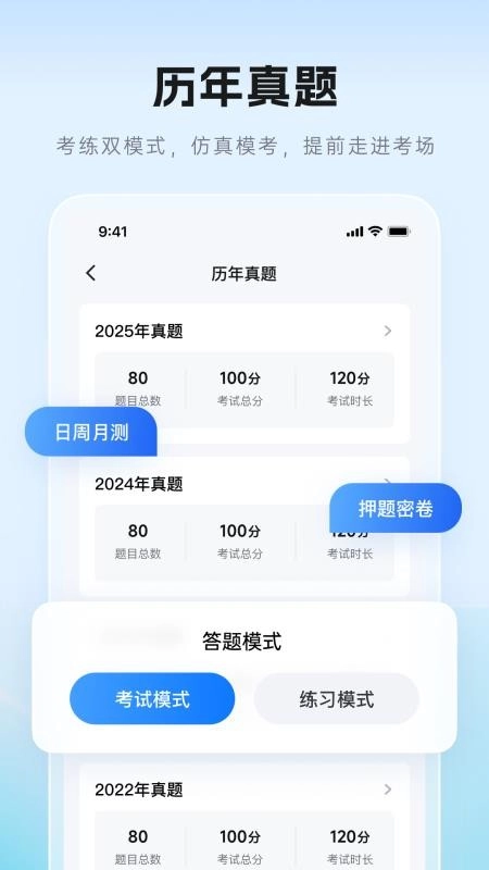 2、设计多种测试模式,如周度小测、月度大考,模拟真实考试的时间压力与综合难度。