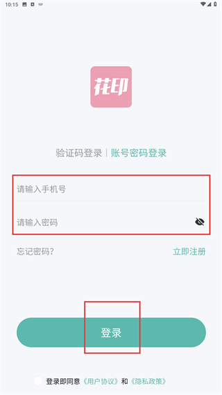 3、选择账号密码登录方式,依次填写【请输入手机号】与【请输入密码】,勾选协议后点击【登录】完成操作。