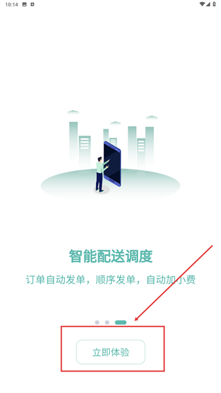 1、在功能介绍页,确认【智能配送调度】相关说明后,点击【立即体验】按钮进入后续流程。