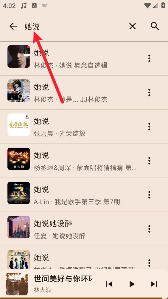 1、支持通过歌曲名、歌手、专辑等关键词开展搜索,搜索结果会实时呈现。