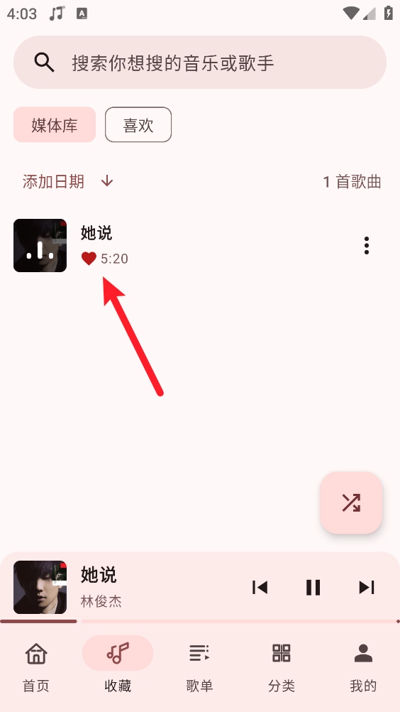 5、最后返回并进入“我的收藏”页面,如图所示,就能查看已收藏的歌曲了。