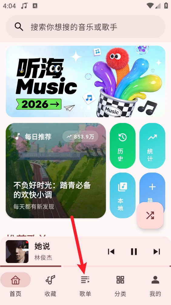1、打开软件,在首页点击"歌单"。