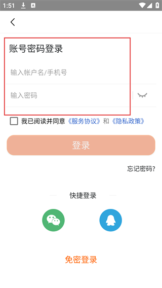 4、账号密码登录:切换到对应的页面,输入账户名/手机号和密码;