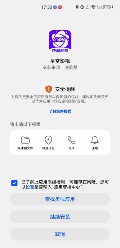 3、第三步,点击勾选“已了解此应用未经检测……”,然后再点击“继续安装”。