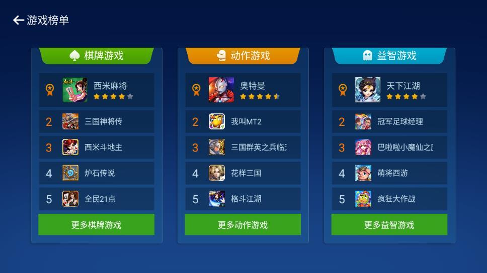 1、能够安装在自家电视机内,软件所提供的各类应用游戏都能在其中体验。
