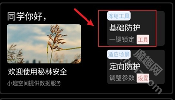 2、进入主界面,点击冻结工具基础防护,添加应用。