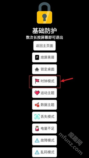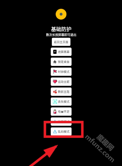 问:开启伪装模式后,桌面变成了时钟或故障界面,要怎样才能恢复原来的界面呢?
