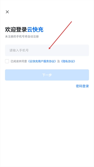 4、请跳转至【云快充】的登录界面,需先完成登录操作,方可进行客服咨询。