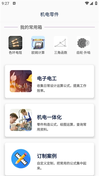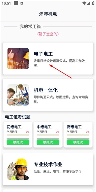 1、在沛沛机电页面点击电子电工选项,进入电子电气相关功能页面。