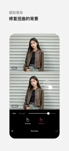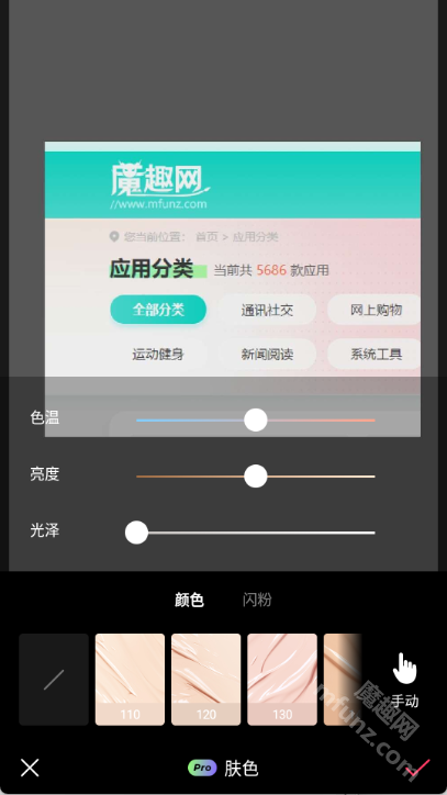 2、选「肤色」磨皮去瑕疵,调节强度保留皮肤质感。