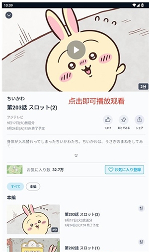 5、进入节目详情页后,点击播放按钮即可开始观看。
