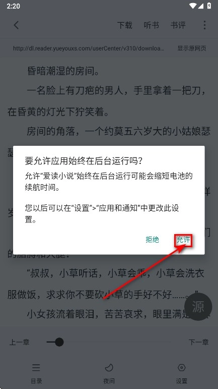 1、进入小说之后,点击屏幕