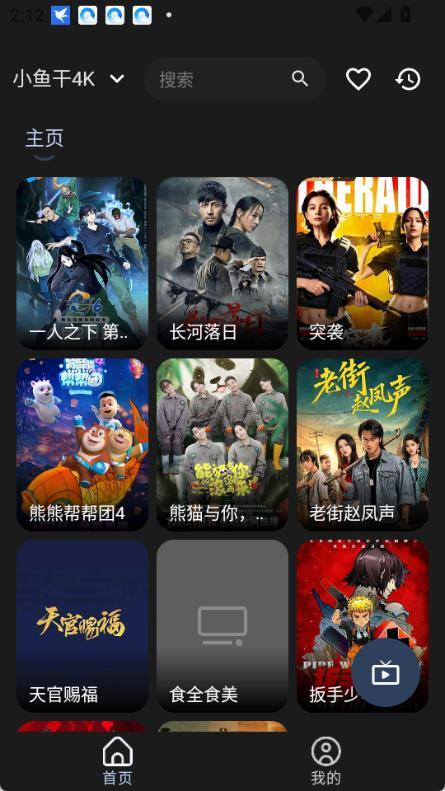 1、添加小鱼干4k配置链接后,首页会出现一个电视图标