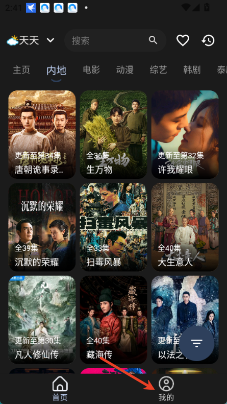 1、打开小鱼干4k影视,点击底部【我的】