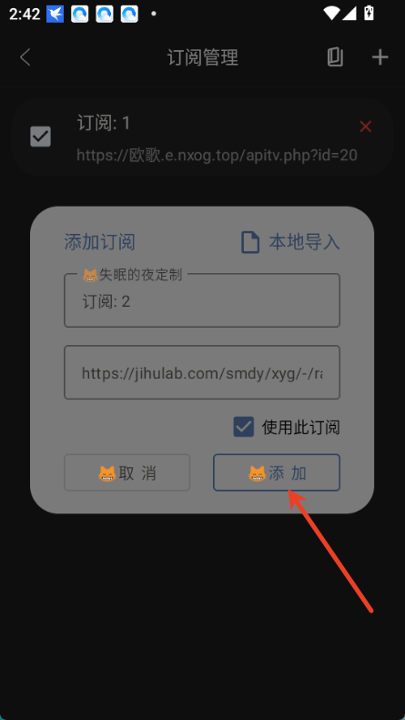 4、最后复制订阅链接并点击添加就可以了。添加完成后可能会出现报错情况,不过没关系,直接回到小鱼干4k影视的主界面,就能看到所有内容都已经更新了。