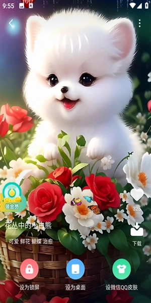 2、点击你喜欢的壁纸后,会看到有设为锁屏、设为桌面、设微信QQ皮肤这些选项。