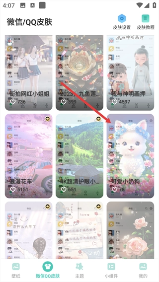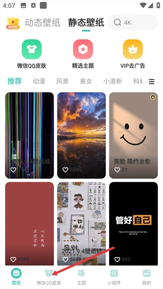 1、点击底部的【微信QQ皮肤】选项,即可进入皮肤选择页面。