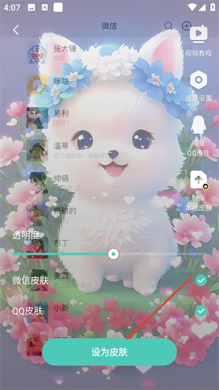 4、确认无误后,点击【设为皮肤】按钮,即可将该样式成功应用为微信或QQ的皮肤。
