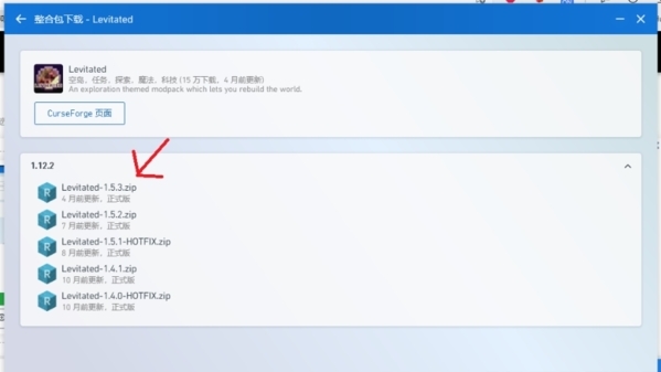 选择整合包的最新版本进行安装